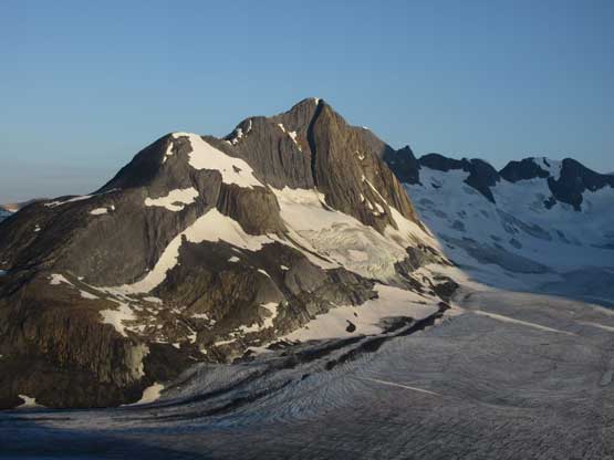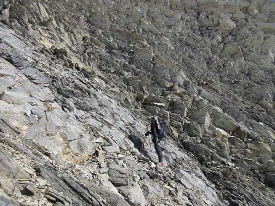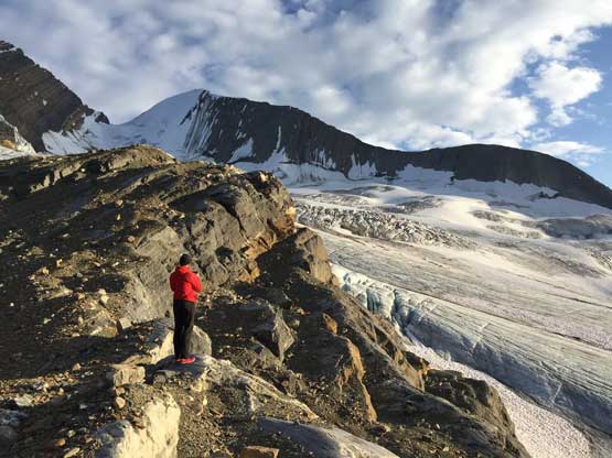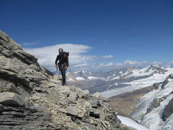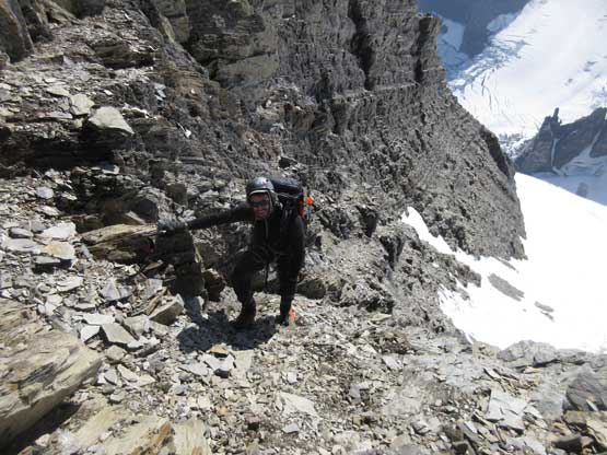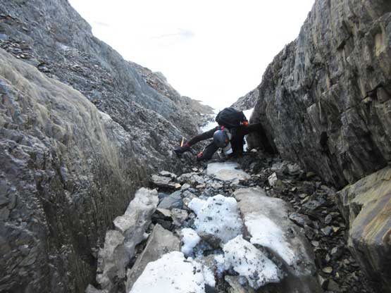 On the 4th day the plan was to lazy out at camp but after a while we started to get bored. Given the conditions we wouldn’t be able to climb anything on snow anymore so Mt. Shipton even Mt. Chettan was out. The only summit doable was Reconnaissance Ridge and even that peak looked a bit sketchy towards the very top. At 3:30 pm I made a call to scramble Reconnaissance Ridge but Oakley opted to rest at camp. The scramble turned out to be an exposed 3rd class near the top with very shitty rocks.
