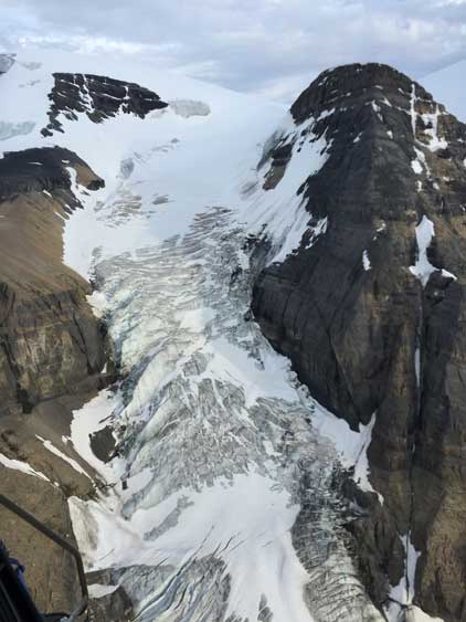 Tusk Peak barely pokes above 11,000 feet to make into that fabled Canadian Rockies list that everybody knows nowadays, and is significantly overshadowed by the gigantic neighbour – the 4th highest in the range, Mt. Clemenceau. The primary objective for anyone going into this area is no doubt Mt. Clemenceau, but Tusk Peak does boast one of the coolest profiles in the Rockies and the climb itself is worthwhile in its own. The major downside of this area is the extreme remoteness that a lift by helicopter is the most realistic way to get into. The flight takes more than 100 km one way from one of the nearest three bases: Golden, Valemount and Abraham Lake and is an expensive ride costing over 6000 dollars round trip. Earlier in this year Oakley W. from Fortress Lake fisherman’s camp contacted me to climb Mt. Clemenceau and Tusk Peak as he found a much better deal for the helicopter rides. The round trip cost would not exceed 500 dollars per person and we just had to find a right week to fly into.