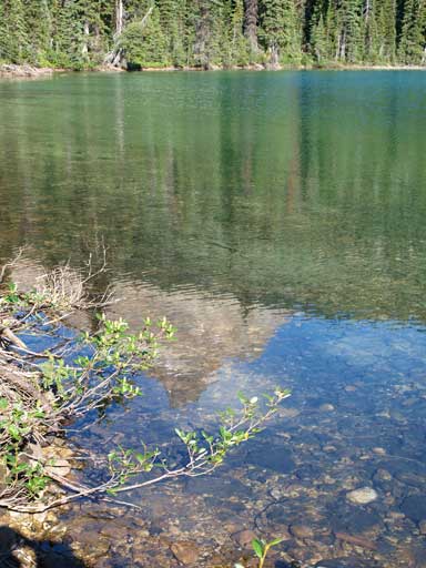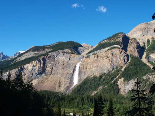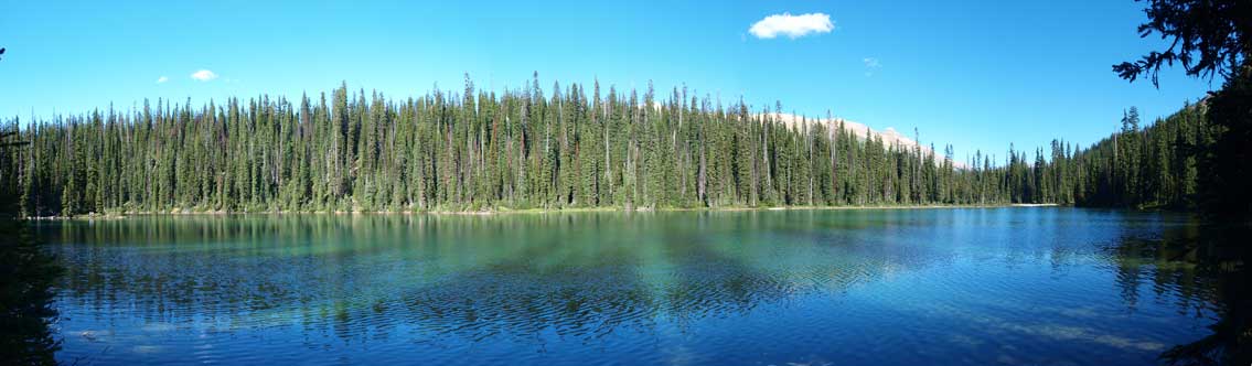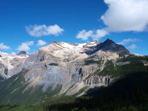 We met at 6:15 am in the morning at the Petro Canada along Highway 1, drove to Yoho Valley and parked at the Whiskey Jack Hostel. This was also the start for Iceline Trail so not surprisingly, we were there with many tourists (hikers). I did Iceline Trail during the Little Yoho trip two weeks ago, therefore I knew exactly where we should go. Basically, follow the signed trail towards Yoho Lake. The trail started steeply up the headwall, but after passing the Iceline Trail junction, the grade eased and the trail traversed horizontally around the mountain towards south-west. The approach was longer than expected but with fast walking we soon arrived at Yoho Lake.