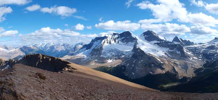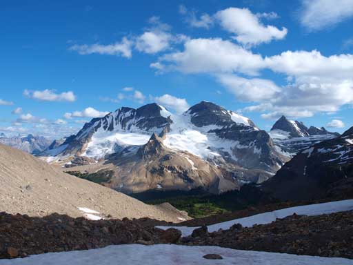 Whaleback Mountain is a mere “easy scramble” and the easiest summit in Little Yoho Valley, but still involves a long approach if you do it in one day from parking lot. It’s better to bag it as part of a multi-peak weekend trip and Mike and I did it as the second objective of our 6-peak weekend.