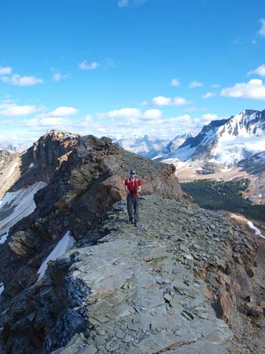 From the base of Isolated Peak we trudged up tedious scree slope to Isolated/Whaleback col, right of the rock pinnacles. That slope was loose and very foreshortened. Once on the col, a scenic ridge walk led us to the summit of Whaleback. Most people say Whaleback is a hike, but I don’t think so. I think if the route involves scree slog, ie, loose stuffs, it cannot be called a hike. I had lots of trouble on loose ground when I started scrambling. Also, some route finding is required on the ridge. I stayed on the ridge crest and there’re several moderate sections involved.