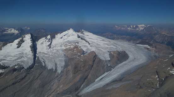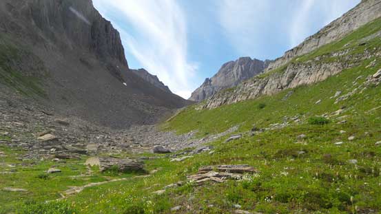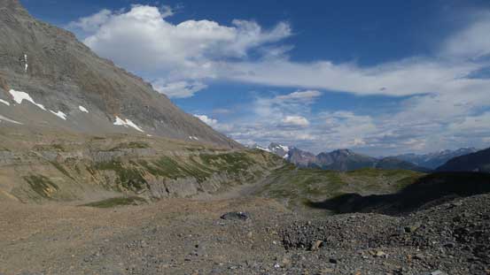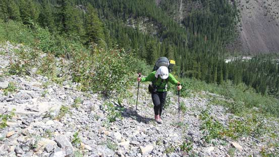 A bit of regain after the glacial descent. Traversing back skier’s right now.