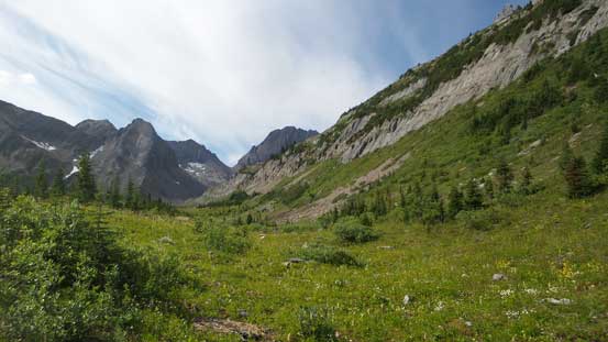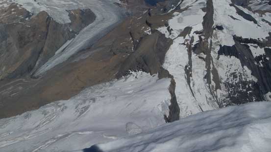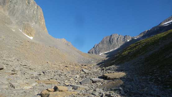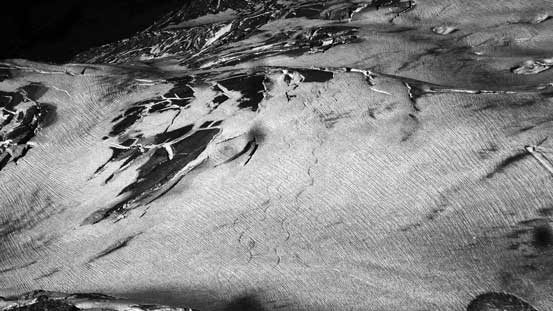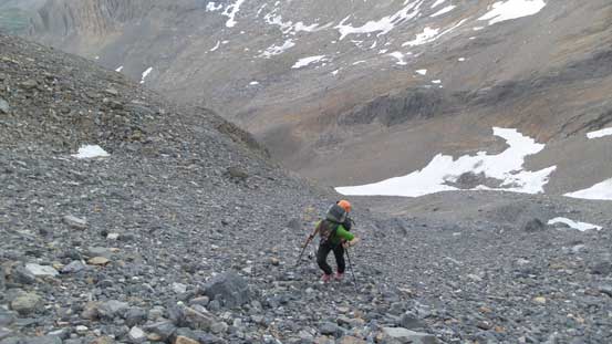 A bit of regain after the glacial descent. Traversing back skier’s right now.