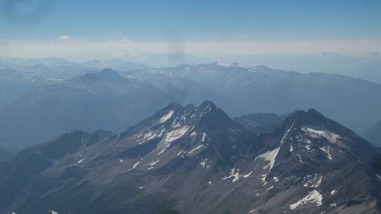 A smoky view towards the distant Cariboo giants – Sir Wilfred Laurier et al.