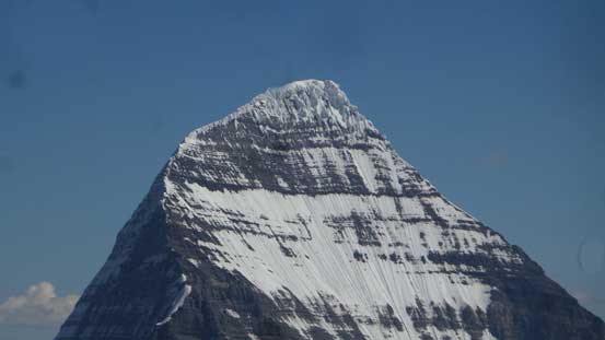 As much as being part of the “Robson Group”, the northernmost 11,000er namely Whitehorn Mountain is completely unattached to the massif of Mt. Robson, separated by the white waters of Robson River and the Valley of a Thousand Falls. This striking horn of snow, ice and rocks is a inspiring and yet frightening-looking peak from any side and the profile is a good match to some of the more famed giants further to the south. It is therefore the proximity to Mt. Robson that puts a damper on things which is very much unfortunate. Like Corbett mentions in his The 11,000ers of Canadian Rockies, “[this] handsome peak would draw considerably more attention if located elsewhere”.