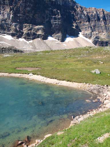 After saying goodbye to them, I started uphill travel again towards Yukness Ledge. Because I didn’t do the north peak of Yukness Mountain, I missed the view of Lake O’Hara. Well, I made up for it by traversing Yukness Ledge. Lots of up-and-downs on the ledge, and eventually I made to Lake Oesa.