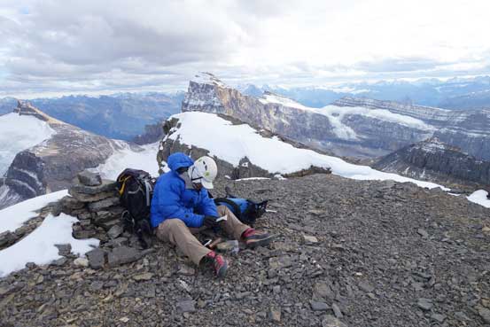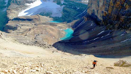 Rock fall – yes I do pay attention. It comes with experience. It’s not difficult to manage rock-fall within a party (even in a group of 4 or 5), but tricky with multiple parties on the same route though. Chephren was an example – there was a party coming up when we were descending the chossy terrain. The only way we could minimize rock fall was to stop and wait. By picking some of the “classics” on weekdays I also try to minimize the multiple-party situation.
