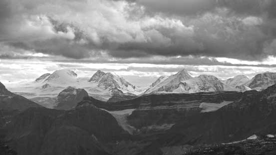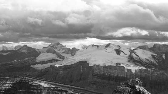 Mt. Michener and Abraham Lake. Both Raff and I did it in winter by cramponing across the frozen lake.