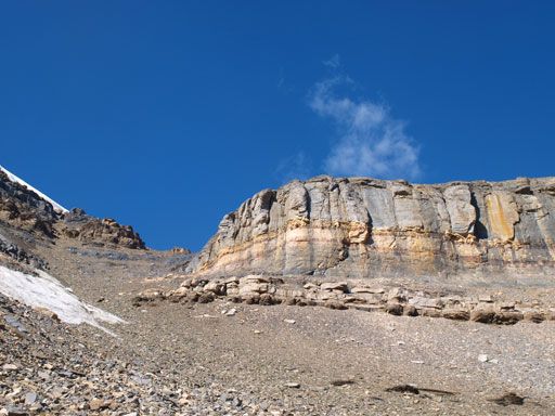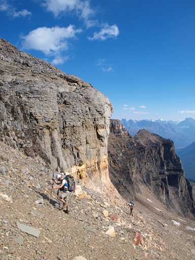 - Friday: cross Chaba River, bushwhack up forested slope, and set up camp at the high lake, scramble up the south face, ascend Catacombs’ upper icefield, and back to camp. (12.5 hours)