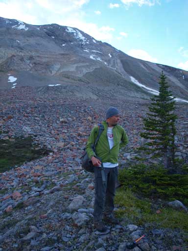 Considering the long descent we didn’t linger any longer on the top. The fun part was gone after we got back to the false summit. The rest of the descent was painful slogging on rubble except for a couple snow patches. After eternity we managed to find scree near the bottom and took advantage of it back to our camp. On the de-proach we decided to follow the creek bed. The bushwhacking was much better than expected and it was mostly open forest. However, there were a couple boulder fields to deal with. We spent a long time descending this valley, and near the end we trended skier’s left and short-cut to the Maligne Pass Trail. We were not home free yet, as we would soon lose the trail. It disappeared into a creek/river, and there was no obvious sign that it continued to the other side. We didn’t do any river fording on our way in anyway. We continued on this side of the creek, bushwhacking trying to regain the trail, but we couldn’t. After a long time Kevin got tired of the bush and forded the river (with boots on), but unfortunately he didn’t find a trail on that side, so we continued bushwhacking down. Eventually we picked a trail with a bridge. Weird… But oh well. Now what was left was about 10 km’s hike out. It took us really forever since we couldn’t get any view at this part except for the creeks and the trees. I timed ourselves that the last 6 km took us 1 hour 10 minutes which was not a bad pace. But it certainly felt like much longer than this. At 8 pm, just over 24 hours after leaving our car, we made it back. Kevin did a great job driving back to Calgary without falling asleep.