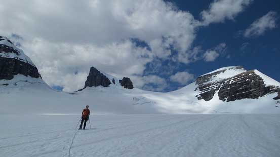 Looking back we could see the icefalls coming down from Lyell 4