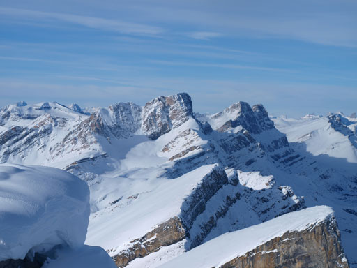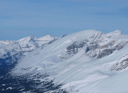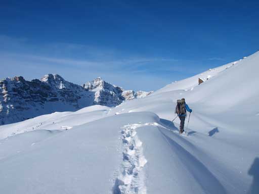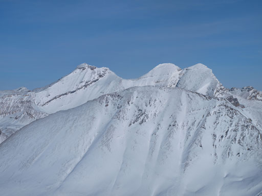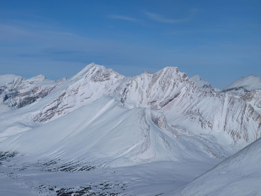 The rest of the way was a pure slog. We took off snowshoes not much further up. My strategy was looking at Ramp and Quarzite as I knew we had to get up at least 100 m higher than both of those peaks before reaching the summit. The view was very nice under the blue sky.