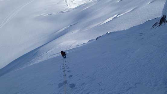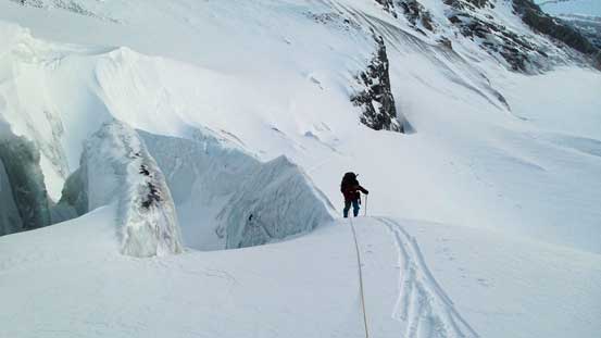 After stepping through a crevasse here's Ben and Vern ascending onto the summit ridge