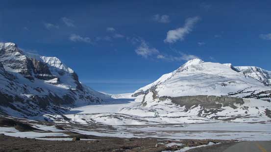 The long stretch of Columbia Icefield's northern branch to the Twins