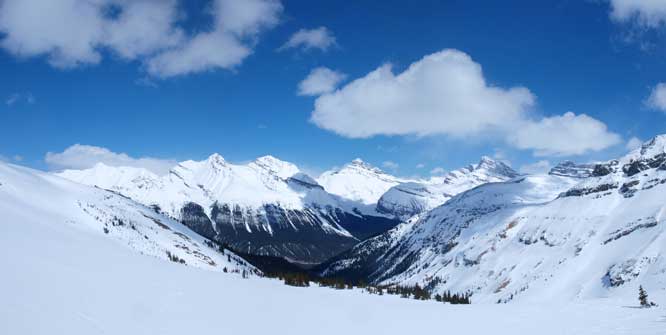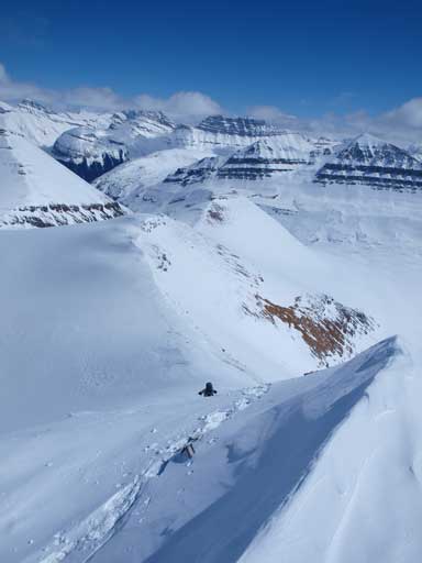We found a (still steep) line down to Big Bend/Sask Junior col. Lots of big terrains, and there is no easy way up the two.