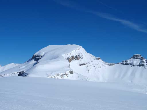 Mt. Thompson was our second objective of this Wapta Icefield snowshoe peak-bagging trip after successfully knocking Mt. Rhondda off our list. This isn’t a small peak, but surely one of the least aesthetic ascents on the Wapta thank to the fact its entire route is pretty much a (frozen) scree slog. The slope is often heavily affected by wind so rarely in a good ski shape. Ben and I would be on snowshoes so we wouldn’t curse that.