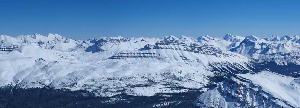 Lots of names. St. Nick looks tiny from here, Olive, Balfour and Gordon behind. You can also see Mt. Temple