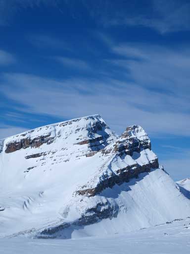 Three peaks of Willingdon on left. Dolomite Peak at center. You can also see Cataract Peak on right side skyline.