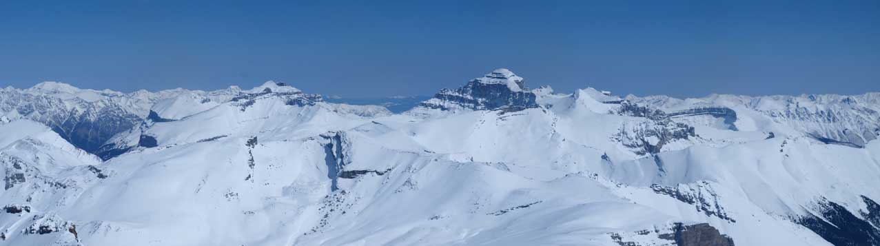 A zoomed-in panorama towards Murchison and Chephren/White Pyramid