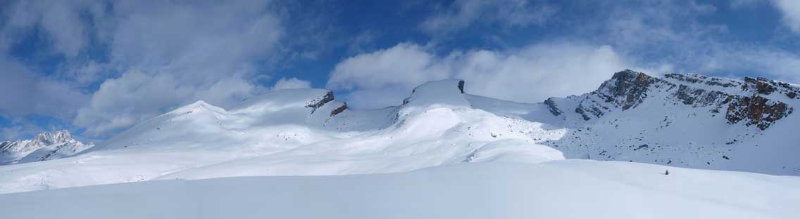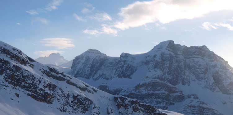 This was the 3rd ascent of my early January snowshoe peak-bagging trip. I was very tired after the Mosquito Mountain, Emerald Peak back-to-back, but given the great weather and avalanche condition I didn’t want to go home yet, so I went to Canmore and checked my email. Luckily I saw Wietse was looking for partners on Friday. Good, so I pointed out several objectives, and he picked Ramp Peak, the longest of those… Speaking this objective, it’s one of the three unofficially named peaks dominating the far end of Mosquito Creek. All three are better ascended in winter and the Ramp Peak is particularly aesthetic.