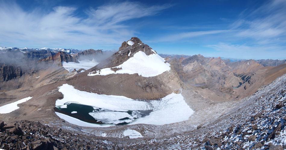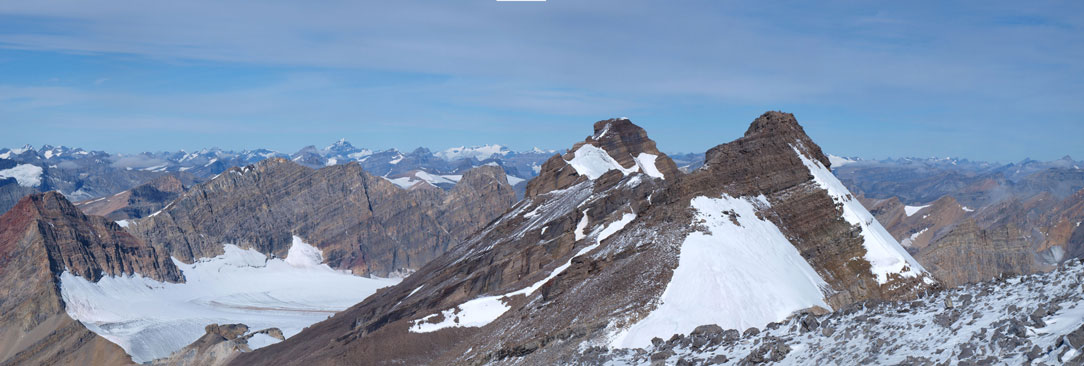 Familiar peaks on Wapta Icefield on left; Freshfield Icefield on right