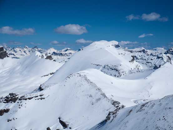 Mistaya Mountain looks great from here. It's a summer ascent via Caldron Lake.