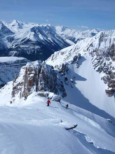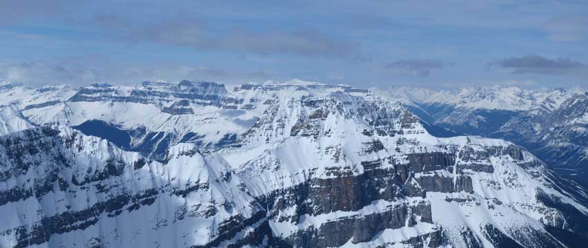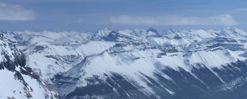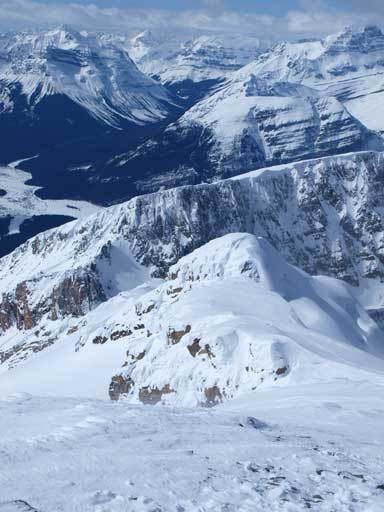 The view was fantastic towards each direction. Mount Chephren looked to be really close, but too bad I had to wait for another day.. Howse Peak didn’t look to be that far neither, but again, it wasn’t on the schedule. This peak is probably the best viewpoint for Freshfield Icefield, and towards Northwest we could see the Lyells and Forbes, and then Erasmus and Amery. Mount Wilson looks attractive, and so does Mount Cline and Mount Murchison. We also got a clear look at Totem Creek, which is the approach route for Corona Ridge. We waited for Wil to show up and cheered on the summit.