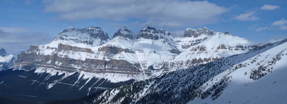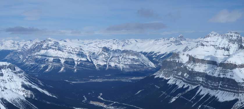 Mount Forbes is the big one. Outram looks more like “Little Forbes”, with The Lyells in the background.