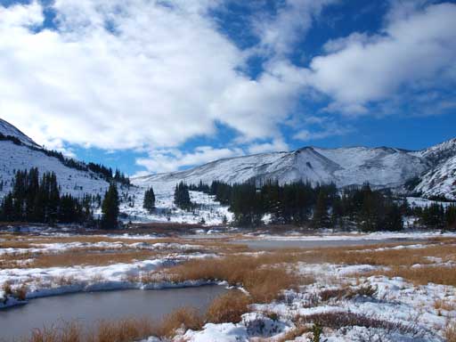 Excelsior Mountain appears to be quite far away now due to the elevation loss to the campground