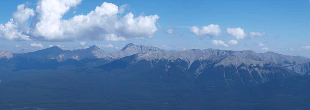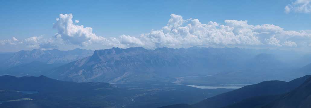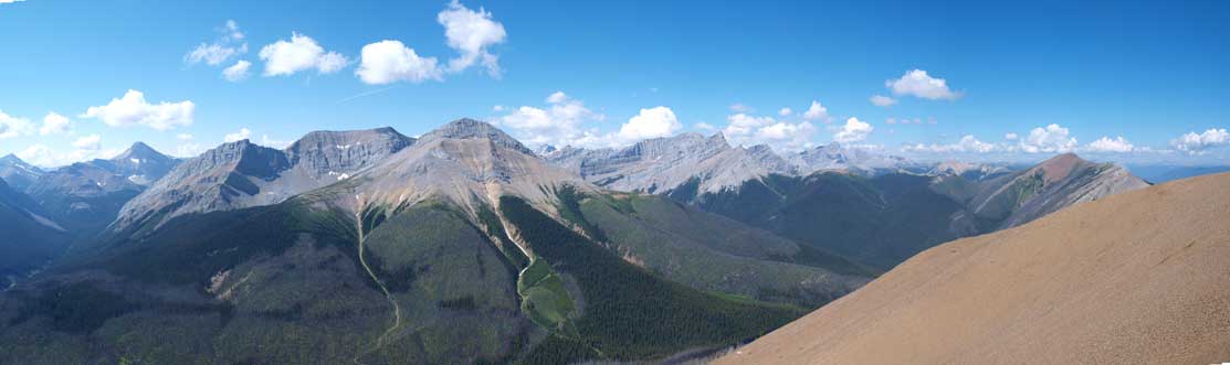 It did take us a long time (especially considering the temperature) to reach the treeline before curving climber’s right towards the summit. To get to the summit it’s merely an off-trail hike. It was my first time in this area and I got views of many peaks that I’d never seen before. Well, at least from this direction. The view of Whitecap is so different than our familiar views from south. We could also see peaks like Haultain, Tory, and Rutherford, sitting deeply in Jasper’s backcountry. The other side is the wide Snake Indian River Valley, with the entire Bosche Range behind.
