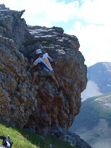 Ben playing around a boulder. It's hard to find hands-on stuffs on this mountain.