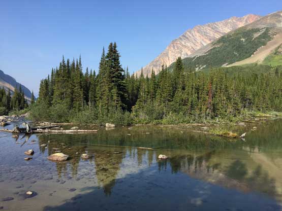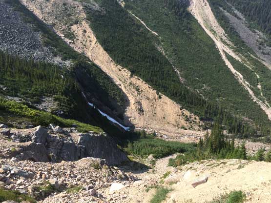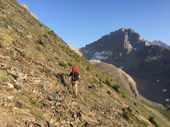 On the morning of Day 3 we eventually got going by around 10 am, as much of a non-alpine start as anticipated. I was still tired from whatever reasons. Descending the headwall underneath Iceberg Lake sucked and then there came that long ass side-hill traverse across hardpacked choss and steep grass, with some degree of exposure. Much of this side-hilling bash was no-mistake zone and we were just glad to have weather on our side. The grass was dry and grippy. I had no idea how some of the parties managed to cross this stretch in wet conditions… We took another long break at West Ridge’s base and then Mike took over the lead. I was mentally tired… While descending towards the uppermost Geraldine Lake we took a line following more-or-less the drainage. There’s some bushwhacking but nothing worth noting. The rest of the hike-out was uneventful except for the endless boulder-hopping. I found the boulders quite fun for reasons that I don’t even know myself. Another long slog down and glad I never have to come back.