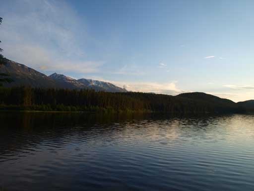 At the Cabin Lake, it was almost sunset time, but I didn’t have the mood to enjoy the scenery. One reason was, I’d lost both of my partners, and the other reason was the mosquitoes. Oh by the way, I’d already put my jacket and hood on, sprayed a ton of bug repellent. It was obviously very hot but I’d rather not getting 50 mosquito bites. Once hitting the lower end of Cabin Lake, I didn’t see Ben which really worried me since there’s an important intersection. According to my map, the left branch goes toward Patricia Lake which would bring us much closer to my car, while the right branch is wider and goes into Jasper. I figured that since Ben didn’t have the Gem Trek map, he might not even know the left branch so I correctly guessed the right trail. Another 2km or so, Ben came up the trail and met me. He didn’t find Eric and he came up to make sure we were not all got separated. My round trip time was 20.5 hours, which is definitely the longest day-trip ever. But on the other hand, I was still not overly exhausted so I knew what I actually can do in one day, not to mention the zero sleep on Saturday night.