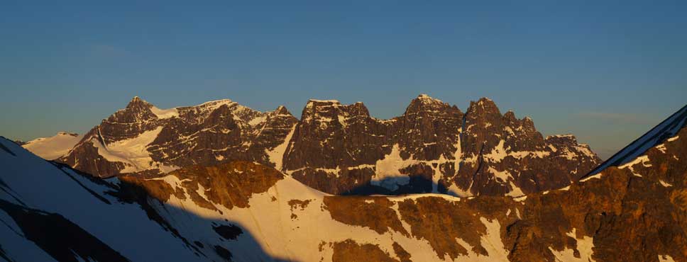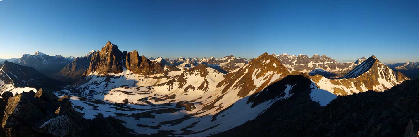 The connecting ridge to true summit wasn’t a walk neither. There was one difficult step that could be bypassed on climber’s left side. The bypass would be loose in summer, and very avalanche prone in winter. With snow cover, the direct line would be very sketchy as well, so I probably wouldn’t recommend this as a winter ascent unless you’re very sure about the snow stability. The summit appeared to be definitely lower than Mount Clitheroe, but I don’t know why the official height is actually a few meters higher than Clitheroe’s. We took a lengthy break up there soaking in all the views. This is an amazing viewpoint in the Tonquin Area that I’d recommend to everybody who has some basic scrambling experience.