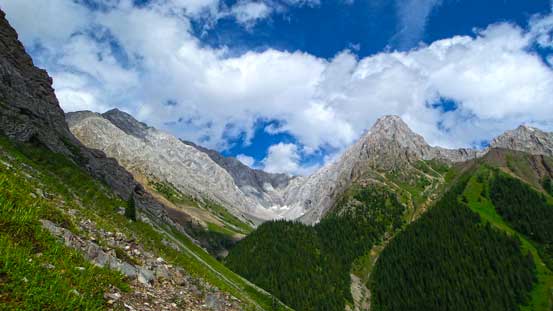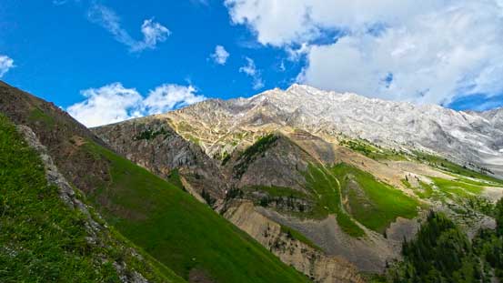 From the grassy col, looking north. There seems to be another grassy plateau between Opal Ridge and Mt. Potts