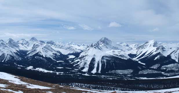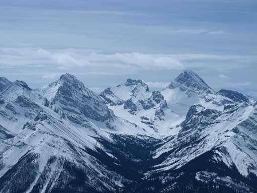 The “standard” route up Little Galatea is from Chester Lake via a huge avalanche gully described in Andrew Nugara’s Snowshoeing in the Canadian Rockies. The route we took is from Rummel Lake via an interesting ridge. I have to thank Marko for exploring it out and sharing his trip report on ClubTread. This is a considerably safer route comparing to Andrew Nugara’s south facing gully, but still involves a few trickier sections along the summit ridge.