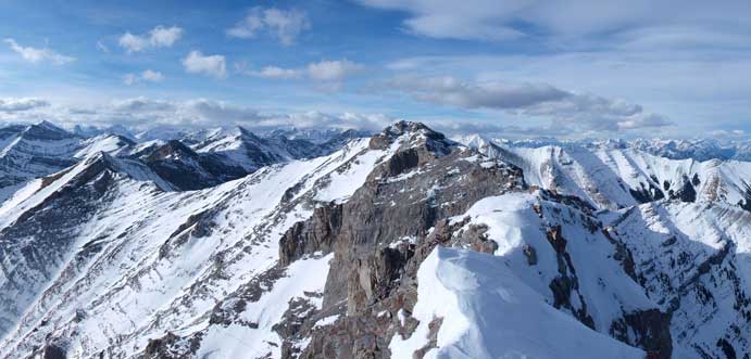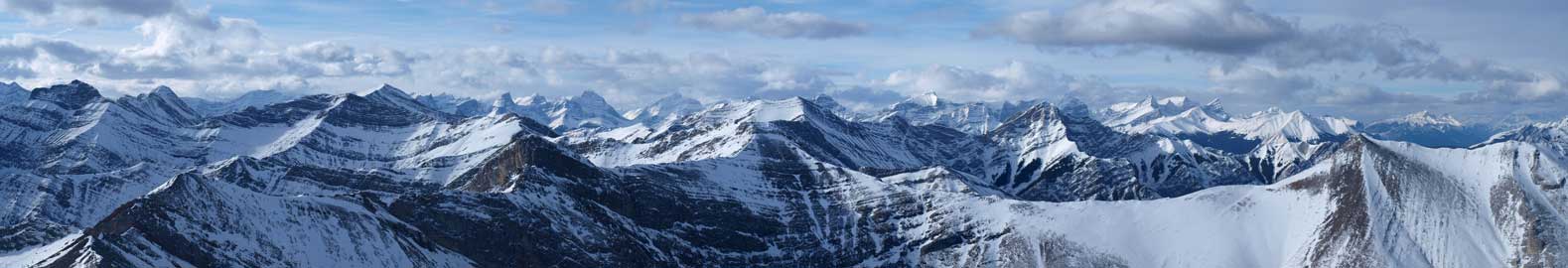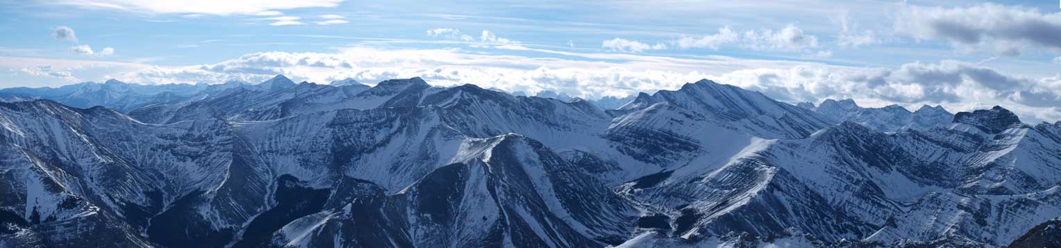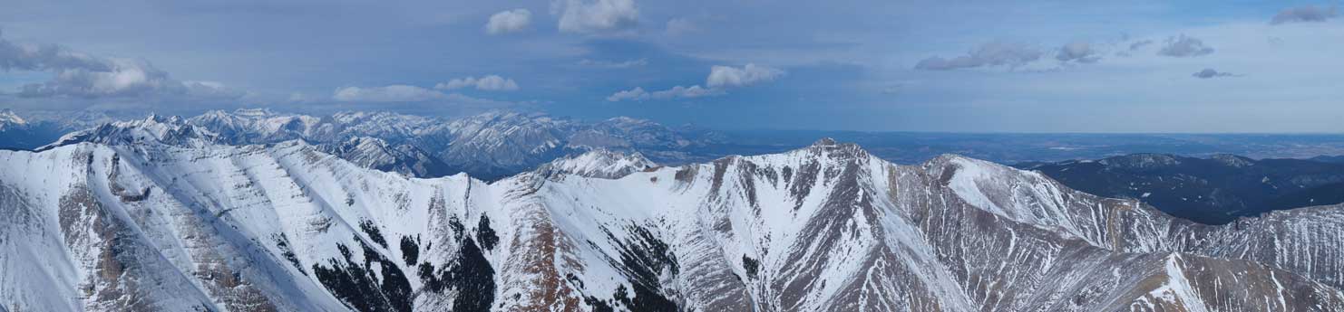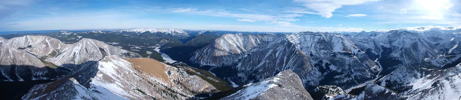 Panorama looking towards Kananskis Valley. You can see the 4 peaks of Lougheed.