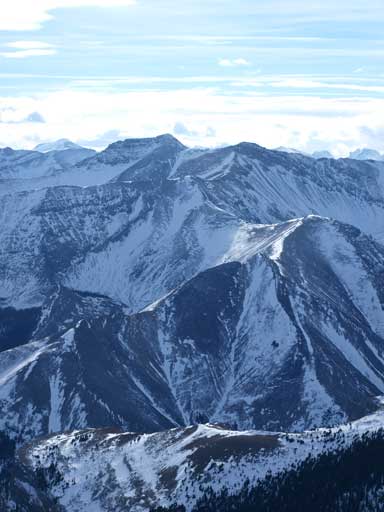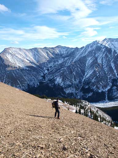 Panorama towards Canyon Creek and Compression Ridge. The orange scree is obvious.