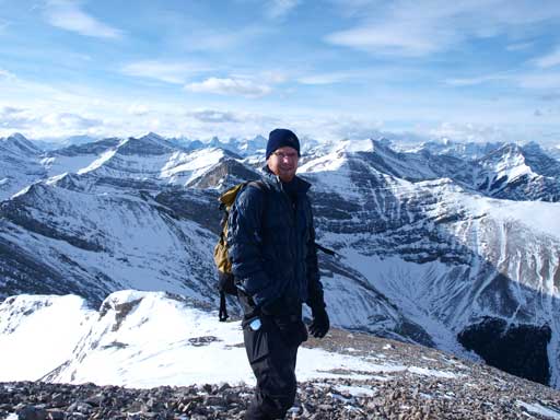 Soon after this big of challenge, we were facing at the huge foreshortened slope leading straight towards the summit. The summit is higher than everything else surrounding, so my suggestion will be keeping eyes on other peaks so you won’t get fooled by the view. You should constantly look back and you’ll be surprised by the views. The frozen Bryant Lake shows up, and then the infamous 4 peaks of Lougheed, Sparrowhawk & Bogart, and then Fortres/Gusty/Galatea group shows up behind Mount McDougall. One way up: 3 hours.