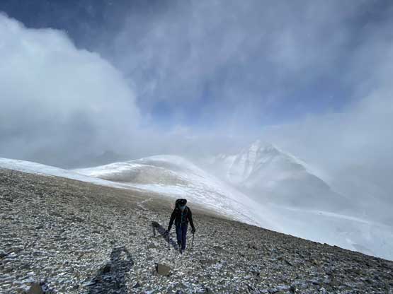 Battling against the wind approaching Cornwall/Outlaw col