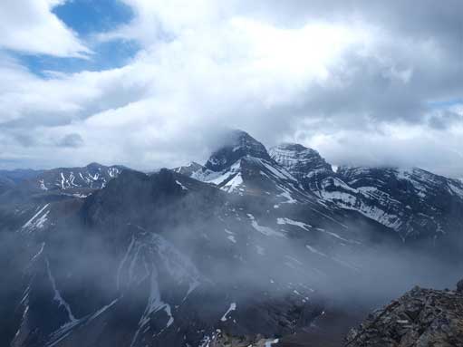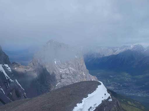 The weather moved away, and we got some views from the top. This is looking across Spray valley.