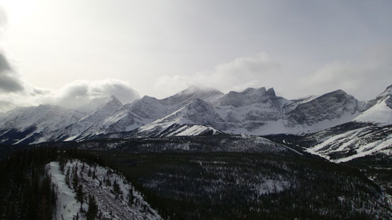 Due to the touchy avalanche condition in this past weekend anything big couldn’t go, but Vern and I were still keen to get out. Spoon Needle seemed like a better idea. I had a panorama photo taken from summit of Opal Ridge showing the entire ascent route (via Fortress Road and south ridge) being pretty much free of avalanche hazard. (There’s still a avalanche gully to cross on the road though). Given the High avi hazard this was pretty much the ‘sexiest’ peak we could do. Not to our surprise nobody else showed interest in ‘bush skiing’ so it would be just two of us, and we met at the parking lot at 8:30 in the morning.