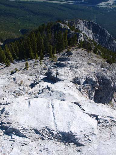Starting at Harvie Heights, I soon found a trail system leading uphill. I followed the signed Tibits Quarry Trail to the end, crossed the drainage, and started the bushwhacking. There was supposed to be a trail, or precisely, a beaten path, but I was too lazy to try finding it. The bush wasn’t too thick neither. With good attitude, I soon reached the treeline.. The weather still held nicely and it was only getting better. From here to the top of the triangle shaped base (the start of the ridge) was quite a bit tedious due to scree. I tried to use the solid slab for as much as I could. Once on the ridge, I was surprised by how much of hands-on scrambling involved. However, nothing too exposed nor difficult. There was just one spot of smooth slab with exposure and no good holds. I would rate this step a “difficult scramble” and everything else “moderate”.