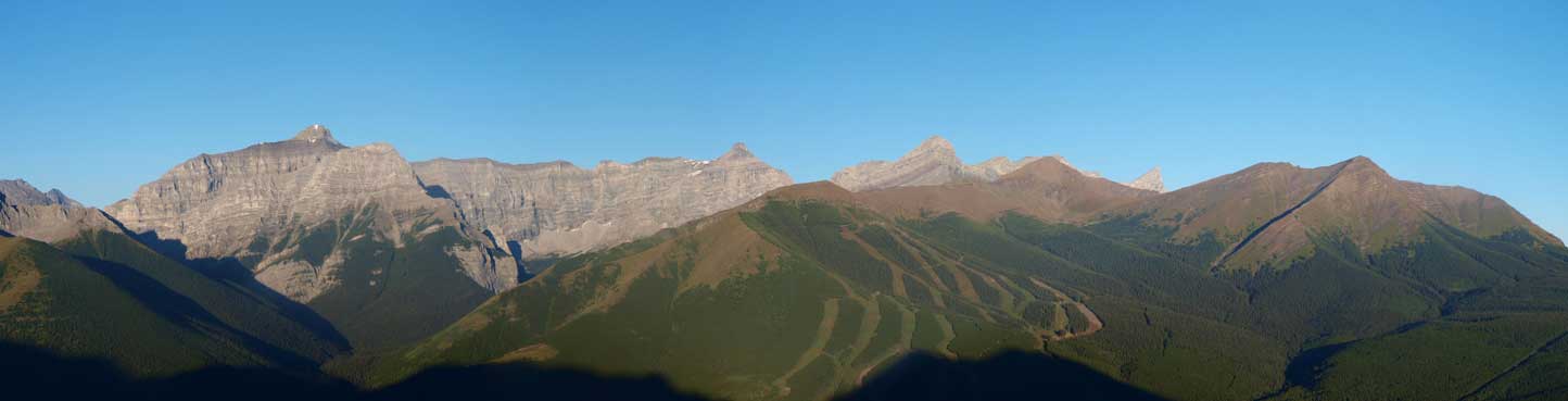 “The Big Traverse” is a combination of 1 official and 5 unofficial summits in Fisher Range in core of Kananaskis’ front ranges and involves fair amount of difficult and exposed scrambling. It’s well documented in Andrew Nugara’s More Scrambles in the Canadian Rockies book and had been on my radar for a while, and I’m glad to finally find capable, fit and motivated partners for it: Neil (Travelin’ Jones) and Tyler Owen Cassley.