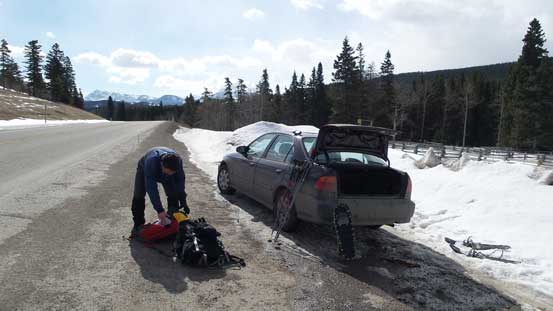 We parked on the highway shoulder.