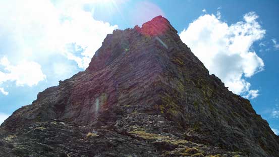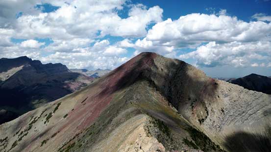 Mt. Carthew is one of the easiest scrambles in Waterton Lakes with a very popular trail leading to the alpine and nothing but a scree walk to the summit from its south ridge. But for those doing the Alderson-Buchanan-Carthew traverse it’s a entirely different game. The ascent via Carthew’s N. Ridge is only for the experienced folks comfortable on exposed, difficult scrambling terrain with excellent route-finding skills. Indeed, the connecting ridge looked fairly nasty but after summitting Mt. Alderson and then Buchanan Peak I was there already so had to give it a go.