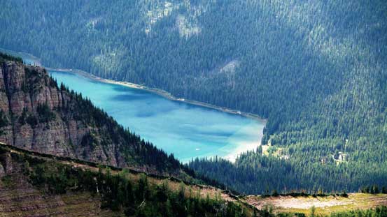 I believe, from Alderson Lake, the cliff (Mt. Alderson) is one of the most spectacular in either park.