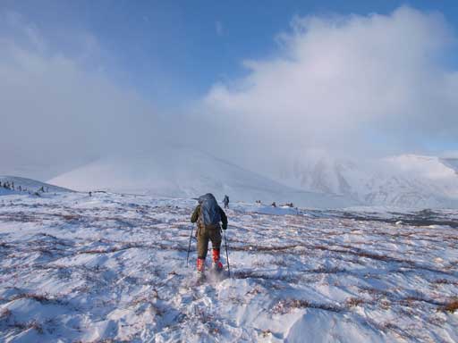 The route is supposed to go climber’s left of the first hill, but for us, to avoid the bottomless snow, we had to go up and over this hill. This was quite a good call, and we got some excellent morning views. The downside was the extra elevation gain/loss/regain but we felt OK with that.