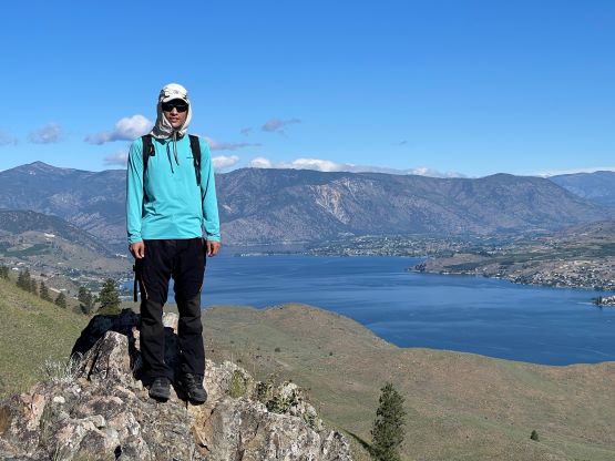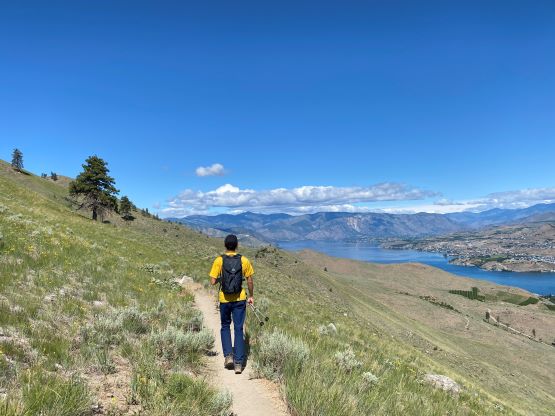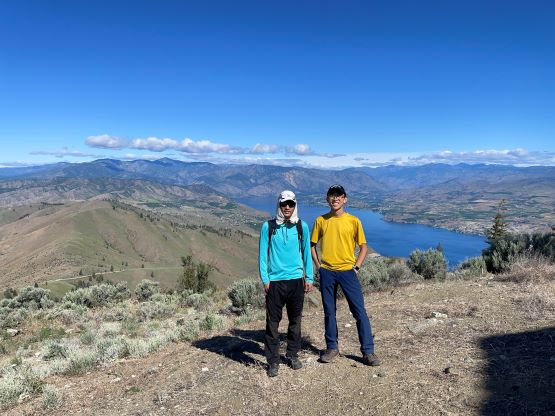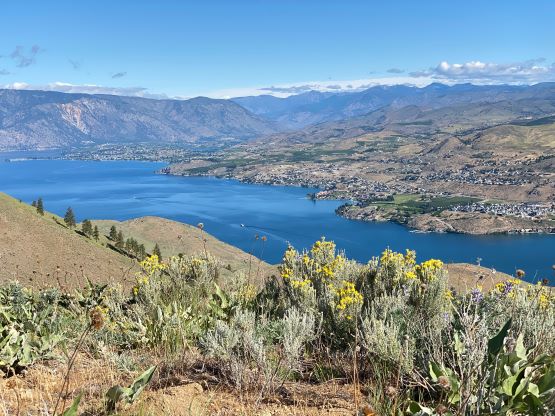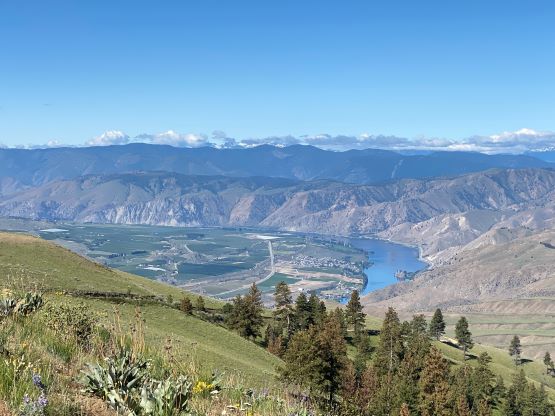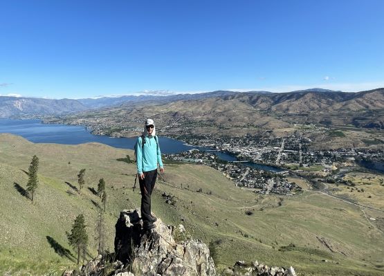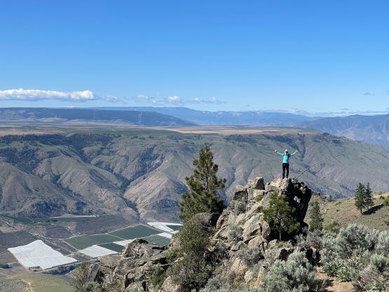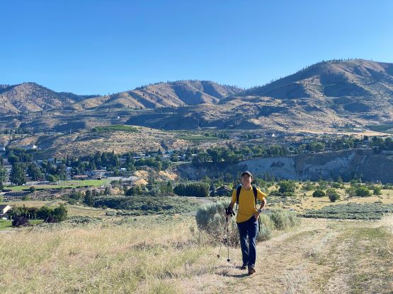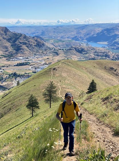 Kostya wanted to get out for a day-trip on Monday and even offered to drive his Tesla out. The weather was terrible with rain and alpine snow anywhere within 4 hours of driving, but sunny on the far eastern edge of the Cascades. I threw out the objective of Chelan Butte and Kostya’s game, despite the driving being 5 hours each way. The plan was to also tag the nearby Badger Mountain due to its prominence, and we ended up scrambling a 3rd objective afterwards, and Kostya even managed a 4th. The two of us left White Rock at 11 pm on Sunday night. My plan was to sleep in the vehicle for several hours wherever we made to, but Kostya managed to stay awake all the way to and past Leavenworth and we eventually slept at a charging station. It was already 3 am and we woke up at around 6 am. We resumed the drive into the town of Chelan and parked at the paved trail-head. This objective turns out to be a great one for the Tesla. With the Tacoma we could have easily driven to the summit of Chelan Butte but the drive-up option was never our intension. We wanted some exercise and the full hike requires 800 m elevation gain.