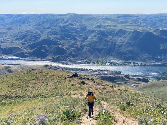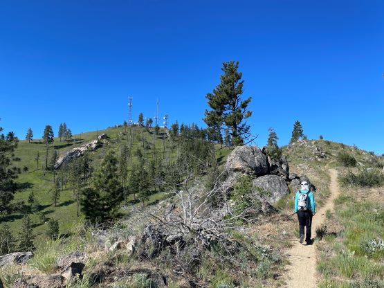 I called for a break once we were no longer in the vicinity of those high-frequency towers and with views of Lake Chelan. I had not eaten anything yet and I was feeling the lack of energy. On the descent Kostya went ahead leading the trail run. Kostya is one of the fastest descenders I have hiked with and I struggled to keep up with the pace. I nonetheless descended at my fastest possible pace and we made down to the parking lot in a single shot. I jogged for about 1/3 to half of the trail distance. Despite that, our round trip time was over 3 hours so like mentioned above this hike does require one to do some workout and isn’t “nothing”. Not doing much lingering at the trail-head we soon started the drive towards Badger Mountain, the most uncertain objective in this day.